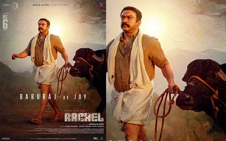 കരിയറിൽ ഇതുവരെ കാണാത്ത വേഷപ്പകർച്ചയിൽ ഹണി റോസ് എത്തുന്ന ‘റേച്ചൽ’ എന്ന സിനിമയിലെ ബാബുരാജ് അവതരിപ്പിക്കുന്ന കഥാപാത്രത്തിന്‍റെ ക്യാരക്ടർ‍ പോസ്റ്റർ പുറത്ത്. ചിത്രത്തിൽ ജോയ് എന്ന കഥാപാത്രമായാണ് താരം എത്തുന്നത്. ക്രിസ്മസ് റിലീസായി ഡിസംബർ 6-ന് അഞ്ച് ഭാഷകളിലായി ചിത്രം പുറത്തിറങ്ങും. മലയാളത്തിലെ ശ്രദ്ധേയ സംവിധായകനായ എബ്രിഡ് ഷൈന്‍ സഹനിര്‍മ്മാതാവും സഹ രചയിതാവുമാകുന്ന ചിത്രം സംവിധാനം ചെയ്തിരിക്കുന്നത് പുതുമുഖ സംവിധായികയായ ആനന്ദിനി ബാലയാണ്.