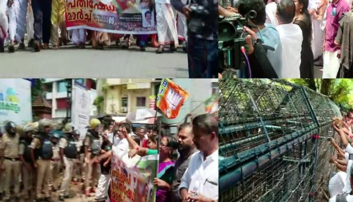 നിലവിൽ മാർച്ച് തുടരുകയാണ്. കോഴിക്കോടിന് പുറമെ കാസർകോടും മാർച്ചിൽ സംഘർഷമുണ്ടായി. സ്വർണ്ണക്കൊള്ളയിൽ നടപടി ആവശ്യപ്പെട്ടാണ് പ്രതിഷേധ മാർച്ച് സംഘടിപ്പിച്ചിരിക്കുന്നത്. സംസ്ഥാനത്തെ ഒരുപാട് ക്ഷേത്രങ്ങളിൽ സ്വർണ്ണ കവർച്ച ഉണ്ടായെന്ന് കോഴിക്കോട്ടെ മാർച്ച് ഉദ്ഘാടനം ചെയ്തുകൊണ്ട് ബിജെപി മുൻ സംസ്ഥാന അധ്യക്ഷൻ കെ സുരേന്ദ്രൻ പറഞ്ഞു. മുഖ്യമന്ത്രിക്കും കൂട്ടർക്കും സ്വർണ്ണം ഒരു വീക്ക് നെസ് ആണ്. എവിടെ കണ്ടാലും അടിച്ച് മാറ്റും. ചരിത്രത്തിൽ കുപ്രസിദ്ധ സ്വർണ്ണ മോഷ്ടാവ് ഔറങ്കസീബാണ്. ഒരുപാട് ക്ഷേത്ര സ്വർണ്ണം അയാൾ കൊള്ളയടിച്ചു.