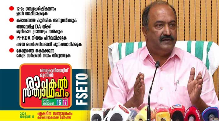 2016 ൽ സർക്കാർ വരുമ്പോൾ പറഞ്ഞിരുന്ന കാര്യമാണ് പങ്കാളിത്ത പെൻഷൻ പദ്ധതി പിൻവലിക്കുമെന്ന്. എന്നാൽ പത്താം വർഷത്തിലും ആ വിഷയത്തിൽ യാതൊരു നീക്കവും നടത്തിയിട്ടില്ല. കാലാകാലങ്ങളിൽ വില സൂചികയ്ക്കനുസരിച്ച് വർധിക്കേണ്ട ക്ഷാമബത്ത അഞ്ചോ ആറോ ഗഡുക്കൾ ഇപ്പോൾ കുടിശ്ശികയാണ്. കൂടാതെ പുതിയ ശമ്പള പരിഷ്കരണം 2024 ൽ വരേണ്ടതായിരുന്നു. എന്നാൽ ഇതുവരെ അതിന്റെ യാതൊരു നടപടിയും തുടങ്ങിയിട്ടു പോലുമില്ല. അതുകൂടാതെ 2019 ൽ നടന്നതിയ ശമ്പളപരിഷ്കരണത്തിന്റെ കുടിശ്ശിക ഇതുവരെ കൊടുത്തു തീർത്തിട്ടുമില്ല.