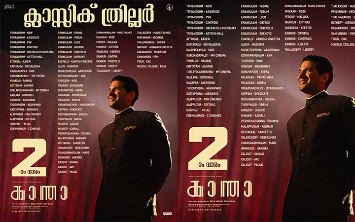 ദുൽഖർ സൽമാനെ നായകനാക്കി സെൽവമണി സെൽവരാജ് ഒരുക്കിയ “കാന്ത” വമ്പൻ പ്രേക്ഷക പിന്തുണയോടെ രണ്ടാം വാരത്തിലേക്ക്. നിറഞ്ഞ സദസ്സുകളിലാണ് ചിത്രം കേരളത്തിലെ തീയേറ്ററുകളിൽ പ്രദർശിപ്പിക്കുന്നത്. രണ്ടാം വാരവും കേരളത്തിലെ പ്രമുഖ കേന്ദ്രങ്ങളിലെല്ലാം ചിത്രം പ്രദർശിപ്പിക്കുന്നുണ്ട്. യുവാക്കളും കുടുംബ പ്രേക്ഷകരും നല്ല സിനിമകളെ സ്നേഹിക്കുന്ന സിനിമാ പ്രേമികളും ഒരുപോലെ സ്വീകരിച്ച ഈ ചിത്രം മികച്ച പ്രേക്ഷക പ്രതികരണവും നിരൂപക പ്രശംസയും നേടിയാണ് മുന്നോട്ടു കുതിക്കുന്നത്. ദുൽഖർ സൽമാന്റെ ഉടമസ്ഥതയിലുള്ള വേഫേറർ ഫിലിംസ്, റാണ ദഗ്ഗുബതിയുടെ ഉടമസ്ഥതയിലുള്ള സ്പിരിറ്റ് മീഡിയ എന്നിവർ ചേർന്നാണ് ‘കാന്ത’ നിർമ്മിച്ചത്. ദുൽഖർ സൽമാൻ, ജോം വർഗീസ്, റാണ ദഗ്ഗുബതി, പ്രശാന്ത് പോട്ട്ലൂരി എന്നിവരാണ് ചിത്രത്തിന്റെ നിർമ്മാതാക്കൾ. ചിത്രം കേരളത്തിലെത്തിച്ചത് വേഫറെർ ഫിലിംസ്.