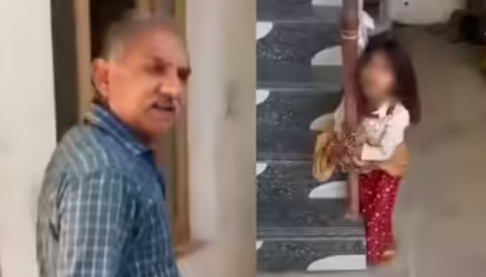 തുടർന്ന് ഇയാൾ പെൺകുട്ടിയെ വീട്ടിലെ ഗോവണിയോട് ചേർന്ന് ചങ്ങല ഉപയോഗിച്ച് കെട്ടിയിടുകയായിരുന്നു. സംഭവം കണ്ടെത്തിയ പ്രദേശവാസിയായ മർച്ചന്റ് നേവി ഉദ്യോഗസ്ഥനാണ് ഇതിന്റെ വിഡിയോ പകർത്തിയത്. രക്ഷിക്കാൻ അഭ്യർഥിച്ച് പെൺകുട്ടി നിർത്താതെ കരയുന്നത് വിഡിയോയിൽ കാണാം. എന്നാൽ പെൺകുട്ടി കരഞ്ഞുപറഞ്ഞിട്ടും വിമുക്തഭടൻ കുട്ടിയെ വെറുതെവിട്ടില്ല. തുടർന്ന് വിഡിയോ പകർത്തിയ ഉദ്യോഗസ്ഥൻ ചൈൽഡ് ലൈനിലും പൊലീസിലും വിവരമറിയിച്ചു.