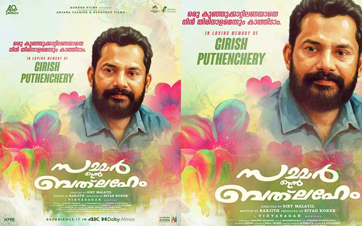 മലയാളത്തിന് എന്നും ഓർക്കാൻ സാധിക്കുന്ന ഒരുപിടി ഗാനങ്ങൾ നൽകിയ ഗിരീഷ് പുത്തഞ്ചേരി എന്ന പേര്, ഒരു സംഗീതാസ്വാധകനും മറക്കാൻ കഴിയില്ല. എഴുതിയ ഓരോ വരികളിൽ ഇപ്പോഴും മൂളുന്ന ആത്മാവും, മായാത്ത ഗാനങ്ങളും സമ്മാനിച്ച പ്രതിഭയെ ഓർക്കാതിരിക്കാൻ സാധിക്കില്ല എന്ന കുറിപ്പോടെ ഗിരീഷ് പുത്തഞ്ചേരിയുടെ പേരിൽ ‘സമ്മര്‍ ഇന്‍ ബത്‌ലഹേം’ 4K പതിപ്പിൻ്റെ പുറത്തിറങ്ങിയ പുതിയ പോസ്റ്റർ ഏറെ ശ്രദ്ധനേടുന്നു. കഴിഞ്ഞ ചില റീ റിലീസ് ചിത്രങ്ങളിലെ പോസ്റ്ററുകളിൽ നിന്നും അദ്ദേഹത്തിൻ്റെ പേര് ഒഴിവാക്കിയതിൽ സാമൂഹ്യ മാധ്യമങ്ങളിൽ ഏറെ വിമർശനം ഉന്നയിവച്ചിരുന്നു.