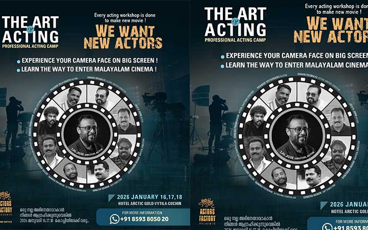 അഭിനയം പഠിപ്പിക്കാൻ മലയാള സിനിമയിലെ പ്രമുഖ കലാകാരന്മാർ കൊച്ചിയിൽ.