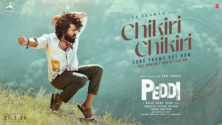 ഹൈദരാബാദ്: തെലുങ്ക് സൂപ്പർതാരം രാം ചരൺ നായകനായി അഭിനയിക്കുന്ന പാൻ ഇന്ത്യൻ ചിത്രമായ ‘പെദ്ധി’യിലേ ഏറ്റവും പുതിയ ഗാനമായ “ചികിരി ചികിരി” യുടെ പ്രോമോ പുറത്ത്. ഗാനത്തിന്റെ പൂർണ്ണ രൂപം നവംബർ 7 ന് രാവിലെ 11.07 ന് പുറത്ത് വരും. ഓസ്കാർ അവാർഡ് ജേതാവ് എ ആർ റഹ്മാൻ സംഗീതം പകർന്ന ഗാനം ആലപിച്ചത് മോഹിത് ചൗഹാൻ ആണ്. ദേശീയ അവാർഡ് ജേതാവ് ബുചി ബാബു സന സംവിധാനം ചെയ്യുന്ന ചിത്രത്തിന്റെ ആഗോള റിലീസ്, മാർച്ച് 27, 2026 നാണ്. വൃദ്ധി സിനിമാസിന്റെ ബാനറിൽ വെങ്കട സതീഷ് കിലാരു ആണ് ചിത്രം നിർമ്മിക്കുന്നത്. മൈത്രി മൂവി മേക്കർസ്, സുകുമാർ റൈറ്റിങ്സ് എന്നിവർ ചേർന്നാണ് ഈ ബിഗ് ബഡ്ജറ്റ് ചിത്രം അവതരിപ്പിക്കുന്നത്.