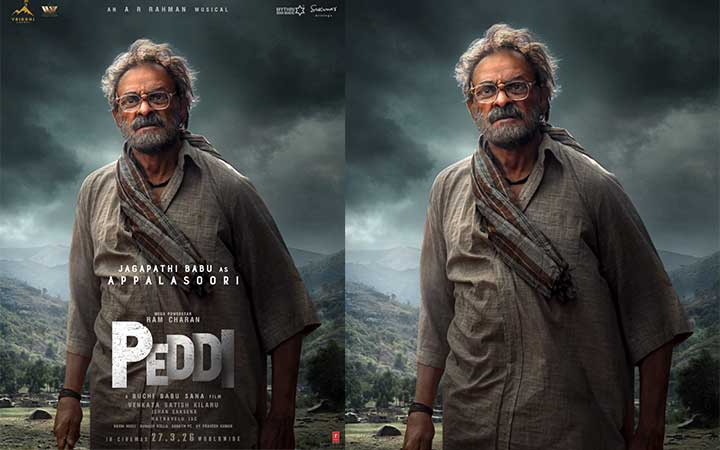 തെലുങ്ക് സൂപ്പർതാരം രാം ചരൺ നായകനായി അഭിനയിക്കുന്ന പാൻ ഇന്ത്യൻ ചിത്രമായ ‘പെദ്ധി’യിലേ ജഗപതി ബാബുവിൻ്റെ ക്യാരക്ടർ പോസ്റ്റർ പുറത്ത്. അപ്പലസൂരി എന്ന് പേരുള്ള കഥാപാത്രം ആയാണ് ജഗപതി ബാബു ഈ ചിത്രത്തിൽ വേഷമിടുന്നത്. ദേശീയ അവാർഡ് ജേതാവ് ബുചി ബാബു സന സംവിധാനം ചെയ്യുന്ന ചിത്രത്തിന്റെ ആഗോള റിലീസ്, മാർച്ച് 27, 2026 നാണ്. വൃദ്ധി സിനിമാസിൻ്റെ ബാനറിൽ വെങ്കട സതീഷ് കിലാരു ആണ് ചിത്രം നിർമ്മിക്കുന്നത്. മൈത്രി മൂവി മേക്കർസ്, സുകുമാർ റൈറ്റിങ്സ് എന്നിവർ ചേർന്നാണ് ഈ ബിഗ് ബഡ്ജറ്റ് ചിത്രം അവതരിപ്പിക്കുന്നത്. ജാൻവി കപൂർ ആണ് ചിത്രത്തിലെ നായികാ വേഷം അവതരിപ്പിക്കുന്നത്.