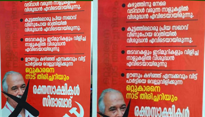 കണ്ണൂർ: ധൻരാജ് രക്തസാക്ഷി ഫണ്ട് ടി ഐ മധുസൂദനൻ എംഎൽഎ അടക്കമുള്ളവര് മുക്കിയെന്ന് ആരോപണം ഉന്നയിച്ച സിപിഎം ജില്ലാ കമ്മിറ്റി അംഗം വി.കുഞ്ഞിക്കൃഷ്ണനെതിരെ പയ്യന്നൂരിൽ വ്യാപക പോസ്റ്ററുകൾ. ഇന്നലെ രാത്രിയാണ് പോസ്റ്ററുകൾ പ്രത്യക്ഷപ്പെട്ടത്. ‘കൂട്ടത്തിലൊരു പ്രിയ സഖാവ് വീണുപോയ രാത്രിയിൽ വിശുദ്ധൻ എവിടെയായിരുന്നു. തടവറകളും ഇടിമുറികളും വിളിച്ച നാളുകളിൽ വിശുദ്ധൻ എവിടെയായിരുന്നു. ഊണും കഴിഞ്ഞ് ഏമ്പക്കവും വിട്ട് പാർട്ടിയെ വെല്ലുവിളിക്കുന്ന ഒറ്റുകാരനെ നാട് തിരിച്ചറിയും. രക്തസാക്ഷികൾ സിന്ദാബാദ്’ – എന്നിങ്ങനെയാണ് പോസ്റ്ററുകളിൽ എഴുതിയിരിക്കുന്നത്. കുഞ്ഞിക്കൃഷ്ണന്റെ ആരോപണങ്ങൾ പൂർണമായി പാർട്ടി തള്ളുകയാണുണ്ടായത്.