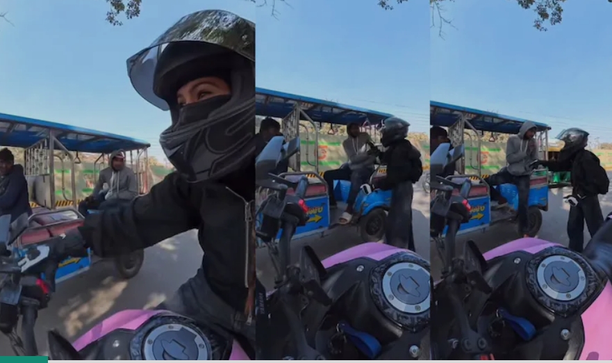 ഉടൻ തന്നെ ബൈക്ക് നിർത്തി യുവതി ഇയാളെ ചോദ്യം ചെയ്തു. ബൈക്കിലെ ക്യാമറയിൽ ഇയാൾ അശ്ലീല ആംഗ്യം കാണിക്കുന്നത് വ്യക്തമായി പതിഞ്ഞിരുന്നു. റിക്ഷയിൽ നിന്ന് ഇറങ്ങിയോടാൻ ശ്രമിച്ച യുവാവിനെ യുവതി തടഞ്ഞുനിർത്തി.